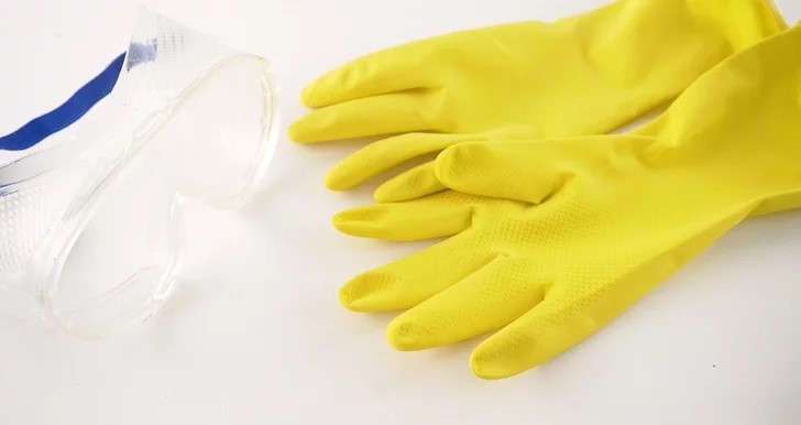 - Đeo găng tay cao su để đảm bảo an toàn: Chất tẩy rửa có thể làm hư da, bỏng da và làm hỏng mắt của bạn. Bạn nên đeo kính bảo vệ và một đôi găng tay cao su khi vệ sinh lò nướng bằng chất tẩy rửa. Không nên sử dụng găng tay dùng một lần vì chúng có thể không đủ độ an toàn đối với chất tẩy rửa.