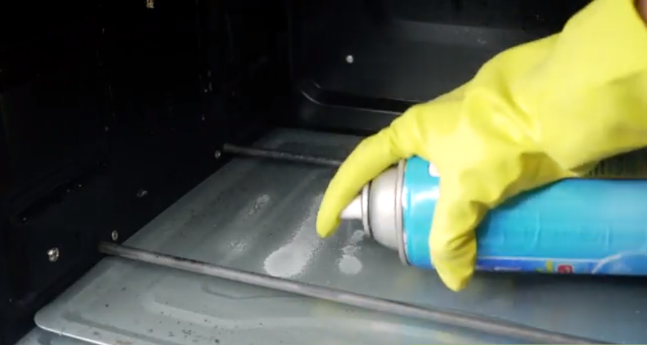 - Xịt chất tẩy rửa vào đáy lò: Xịt chất tẩy rửa vào đáy lò, xịt chuyển động từ trái qua phải.