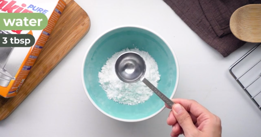 Dùng một cái bát trộn 1/2 cốc baking soda (120ml) với 3 muỗng canh nước (44ml) sau đó trộn đều để tạo thành hỗn hợp sệt. Dùng hỗn hợp đó bôi lên đáy lò và để qua 12 giờ hoặc qua đêm, sau đó dùng giấm xịt vào đáy lò và dùng khăn lau.