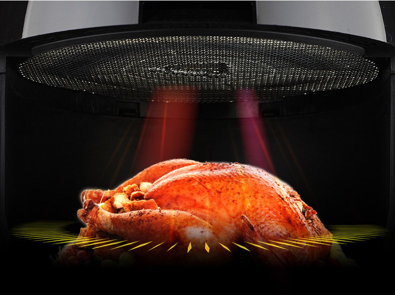 Với các món nướng, chỉ mất khoảng 3 phút để máy làm nóng không khí lên mức nhiệt mong muốn. Tổng thời gian làm chín thực phẩm rút ngắn lại chỉ bằng một nửa so với lò nướng đối lưu thông thường.