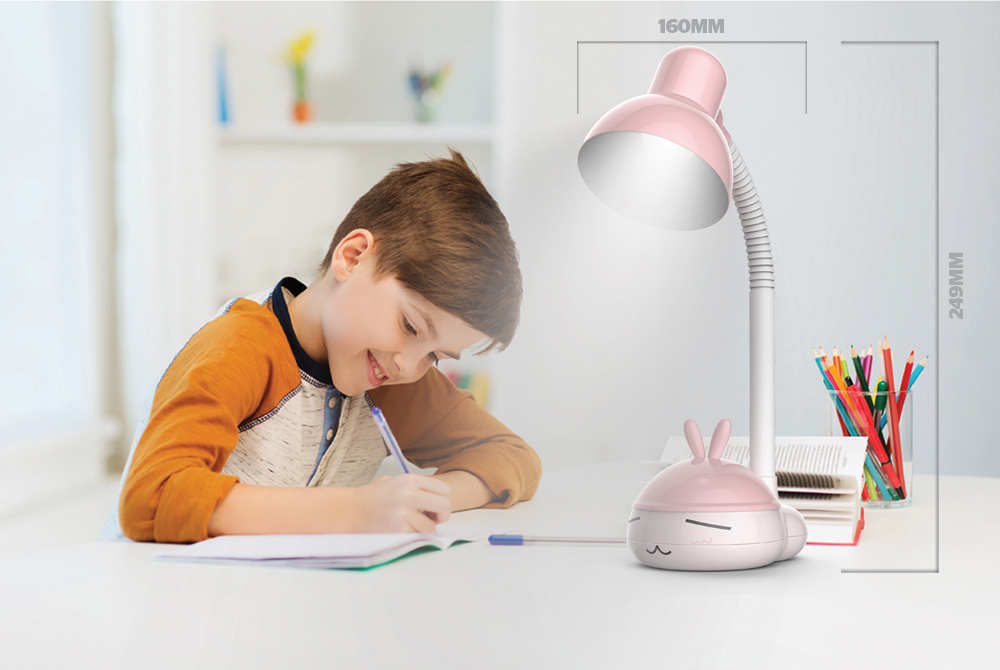 Với các loại đèn để trên bàn học, nên chọn loại đèn có độ cao từ 20cm hoặc có thể tùy chỉnh độ cao phù hợp. Đây là độ cao phù hợp với trẻ, giúp ánh sáng tỏa đều khắp bàn học.