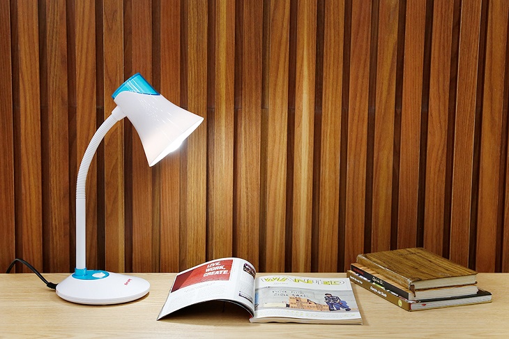 Vì vậy, khi chọn đèn bàn học là loại lắp bóng đèn LED, nên chọn loại có công suất dưới 13W, hoặc chọn bóng đèn công suất dưới 60W nếu là loại bóng đèn sợi đốt. Đặc biệt, khi chiếu sáng, bóng đèn LED không phát ra các tia tử ngoại (UV) và tia hồng ngoại (IR), không gây chói và lóa mắt, hiệu quả chống cận cao.