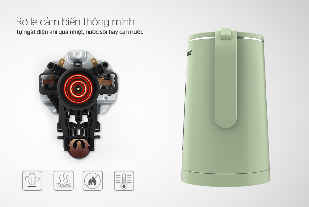 - Tự động tắt khi nước sôi, cạn nước hoặc quá nhiệt