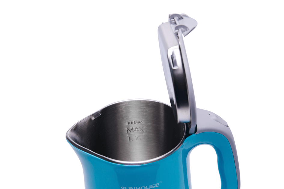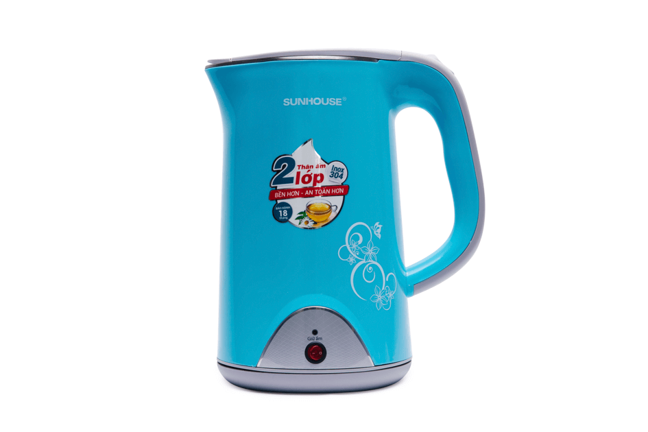 Ấm siêu tốc SUNHOUSE được thiết kế với dáng đứng thon gọn, với tay cầm bằng nhựa cao cấp và cách nhiệt tốt giúp bạn yên tâm không bị nóng bỏng tay khi sử dụng ấm đang chứa nước sôi.
