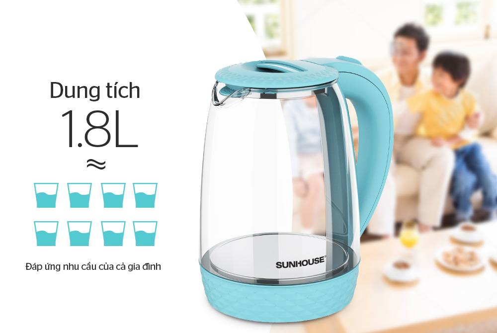 Ấm siêu tốc thủy tinh 1.8 L SUNHOUSE SHD1215 có thiết kế vô cùng sang trọng, tinh tế với thân bình trong suốt đặc biệt. Màng lọc chống cặn thông minh giúp an toàn sử dụng, dung tích lớn cung cấp đủ nước sôi để cả nhà nấu mì, pha trà, cà phê, pha sữa… mọi lúc mọi nơi.