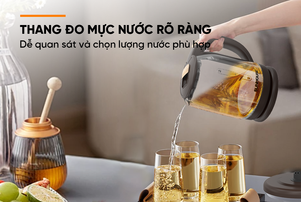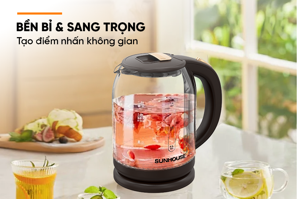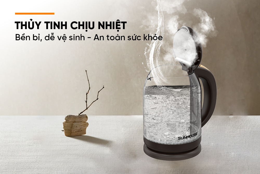 Ấm siêu tốc Sunhouse SHD1212 được làm từ chất liệu thủy tinh chịu được nhiệt độ cao đảm bảo độ bền và an toàn cho sức khỏe cho người dùng