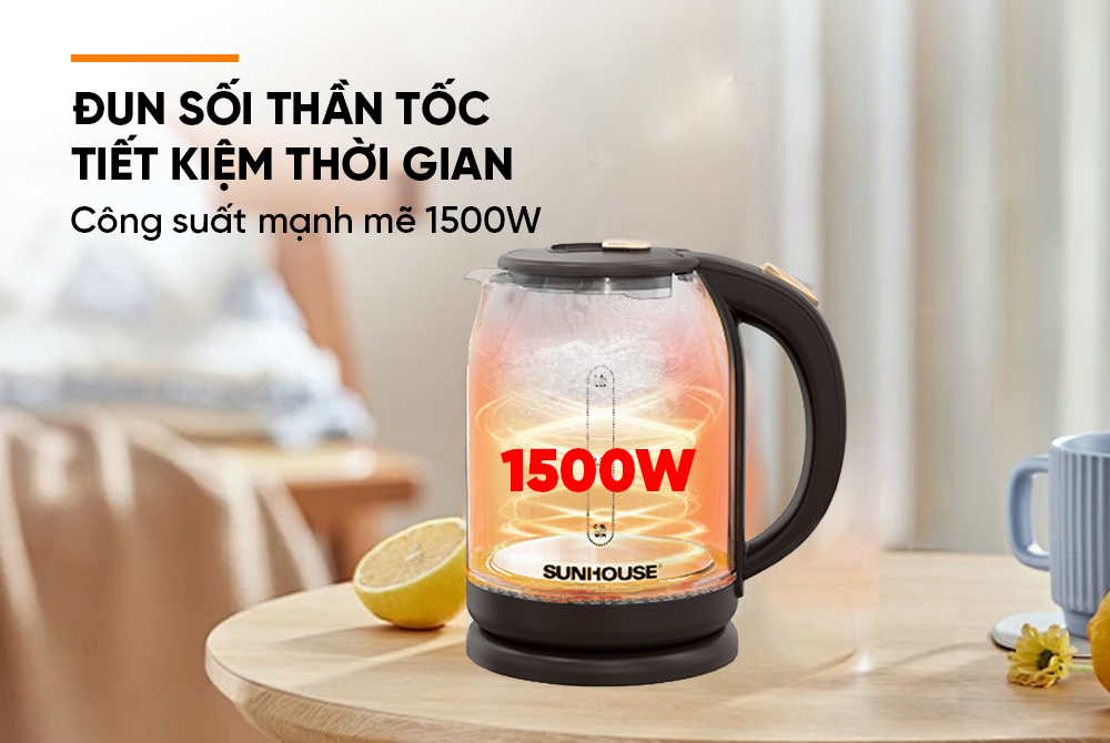 - Công suất mạnh mẽ 1500W, đun sôi thần tốc