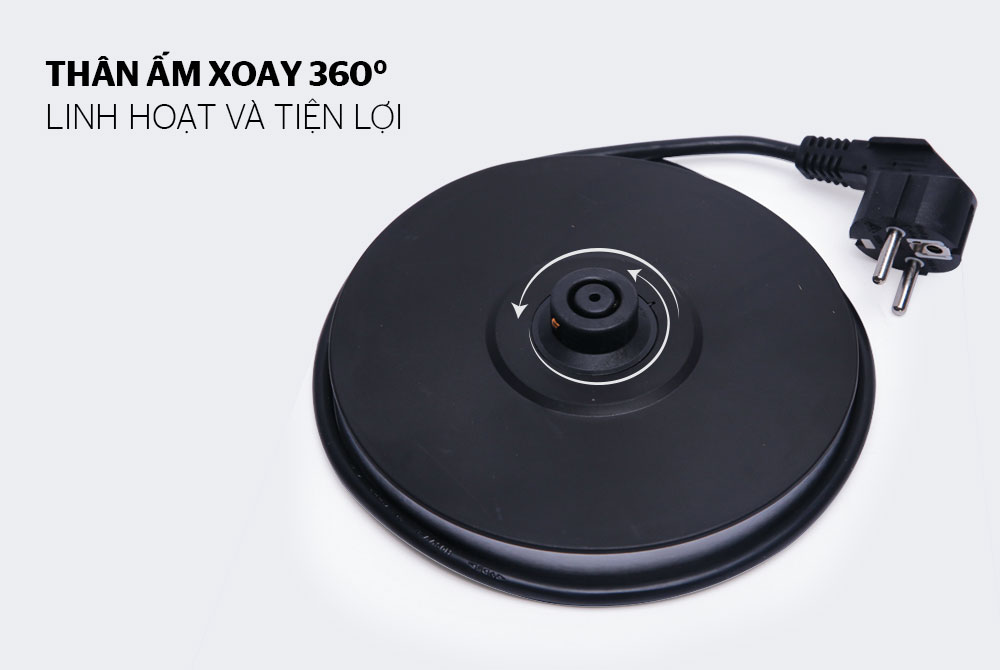 - Thân ấm xoay 360 độ, tự động ngắt khi nước sôi