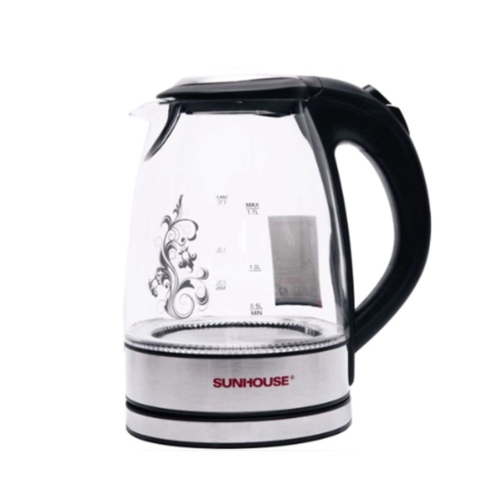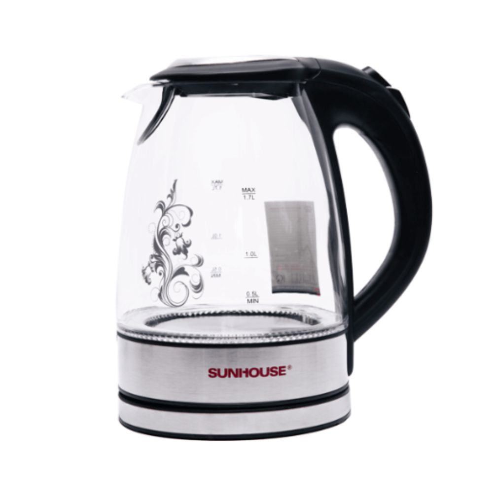 Ấm siêu tốc SUNHOUSE 1.7 L SHD1217 có kiểu dáng đẹp, sang trọng. Thân ấm bằng thủy tinh chịu nhiệt trong suốt, hoa văn bắt mắt, tính thẩm mỹ cao, không bị oxi hóa nên rất an toàn cho sức khỏe và tiện lợi khi vệ sinh.