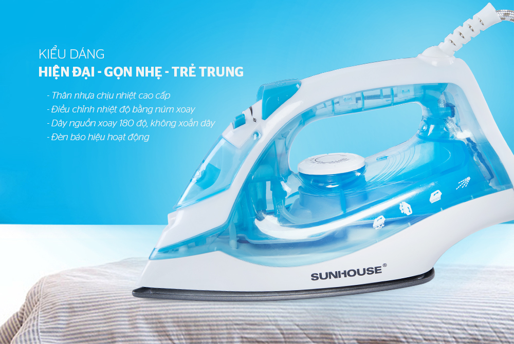 Với mặt là chống dính, công suất phun hơi luôn duy trì ở mức cao đồng thời tích hợp chức năng điều chỉnh nhiệt độ linh hoạt cho mọi loại vải, bàn là hơi SUNHOUSE SHD2065 chắc chắn sẽ khiến bạn hài lòng bởi khả năng là phẳng mọi nếp nhăn, cho quần áo luôn như mới.