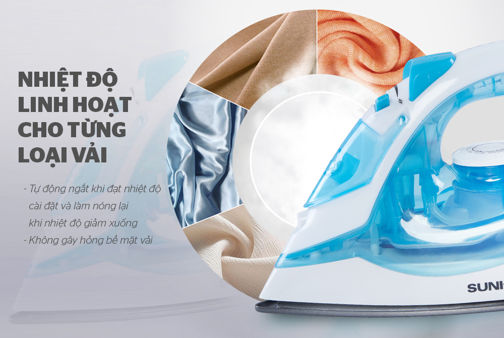 An tâm hoàn toàn khi sử dụng bàn là hơi SUNHOUSE vì được trang bị cảm biến nhiệt an toàn, tự động đóng ngắt khi quá tải nhiệt. Bàn là sẽ tự ngắt khi đạt đến nhiệt độ lý tưởng (phù hợp với các loại vải khác nhau).