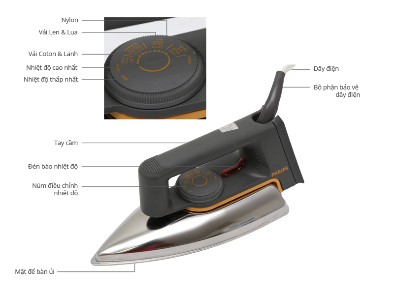 - Mặt đế bằng hợp kim nhôm đúc dẫn nhiệt tốt ủi tiện lợi.