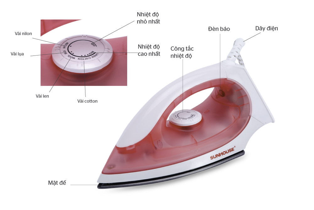 Bàn là khô SUNHOUSE SHD1072 là thiết bị gia dụng thiết yếu trong mỗi gia đình. Với công suất lớn dễ dàng điều chỉnh bằng núm xoay, mặt bàn là chống dính lướt êm trên mọi mặt vải, dây điện chắc chắn an toàn, sản phẩm có khả năng ủi là nhanh hơn hẳn so với bàn là thường, xóa nhanh các nếp nhăn quần áo mà không làm phai màu, giữ mùi thơm của quần áo lâu dài.