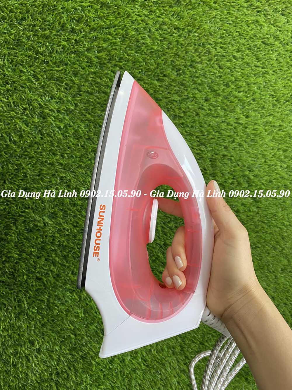 Bàn là khô SUNHOUSE SHD1072 màu trắng kết hợp với màu hồng trẻ trung, bắt mắt làm sinh động không gian sử dụng. Tay cầm thiết kế vừa vặn giúp người dùng ủi chắc chắn, không gây mỏi khi phải ủi nhiều và ủi lâu.