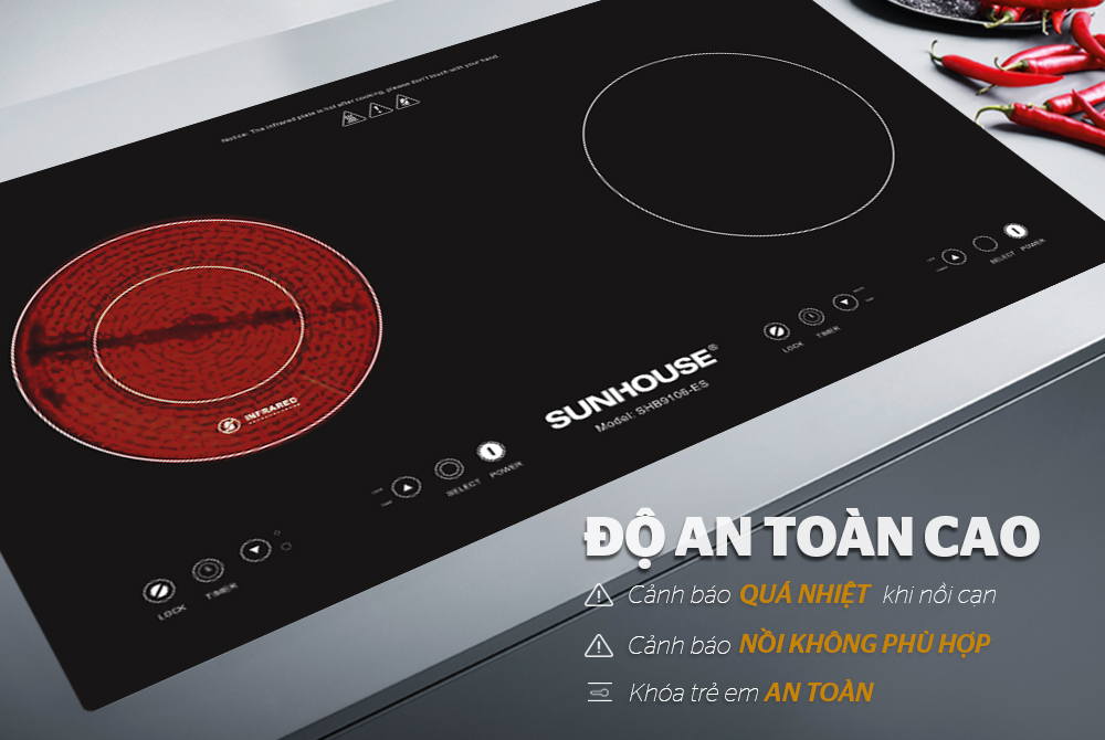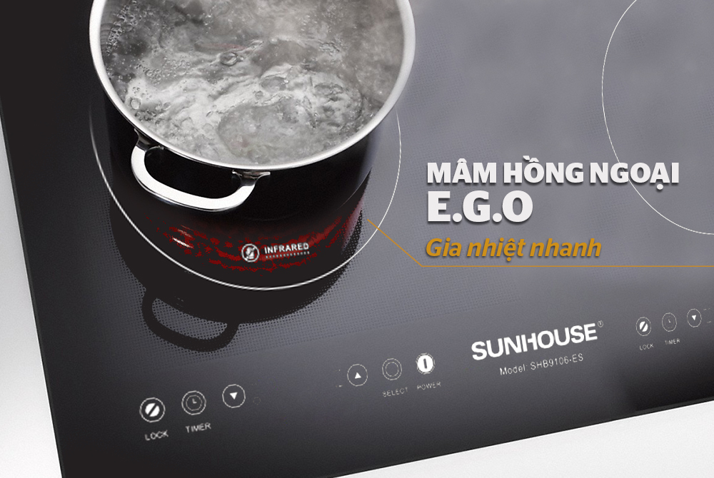 Ngoài vùng bếp từ, SHB9106-ES còn có vùng bếp hồng ngoại giúp gia nhiệt nhanh, sử dụng được với mọi loại nồi chảo có đáy phẳng. Vì thế, bạn sẽ tiết kiệm được chi phí đáng kể vì không phải mua thêm nồi chảo dùng riêng cho bếp từ.