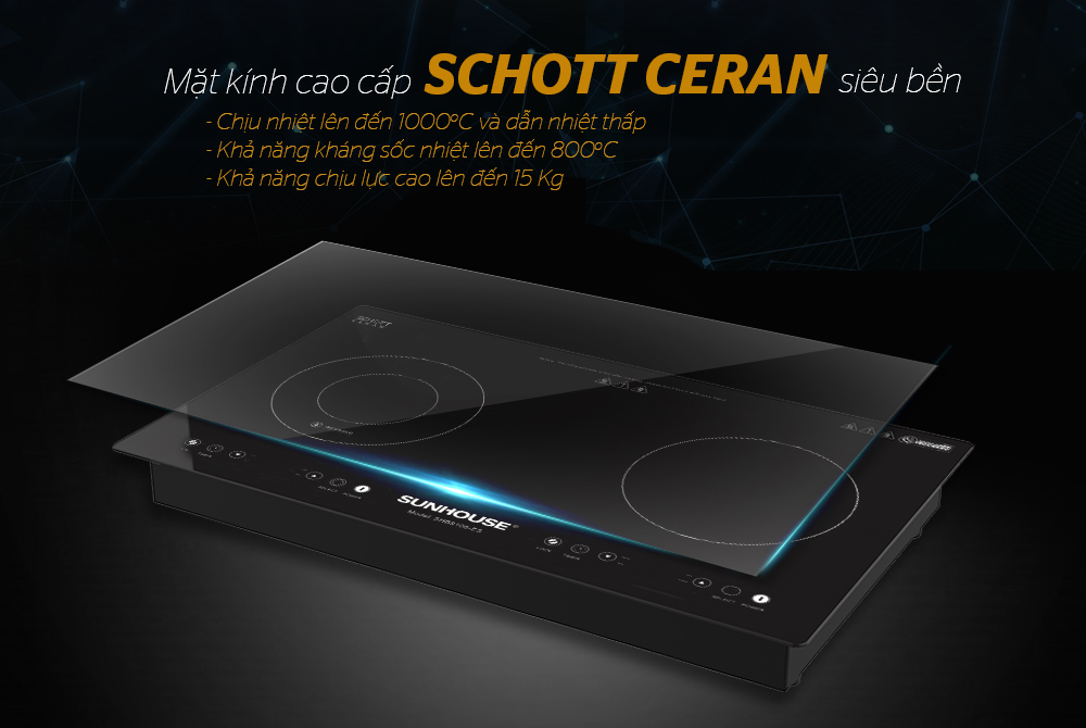 SHB9106-ES sử dụng mặt kính Schott Ceran vát cạnh tinh tế. Đây là loại kính cao cấp, làm từ gốm sứ thủy tinh đặc biệt, siêu cứng, siêu bền, độ bền lên đến 20 năm và không chứa các chất độc hại với sức khỏe. Kính Schott Ceran có khả năng chống sốc nhiệt và chịu được nhiệt lên tới 800 độ C nên không bị nứt vỡ khi thay đổi nhiệt đột ngột.