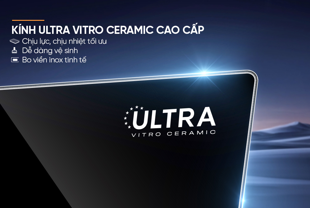 - Mặt kính cao cấp Ultra Vitro Ceramic sang trọng
