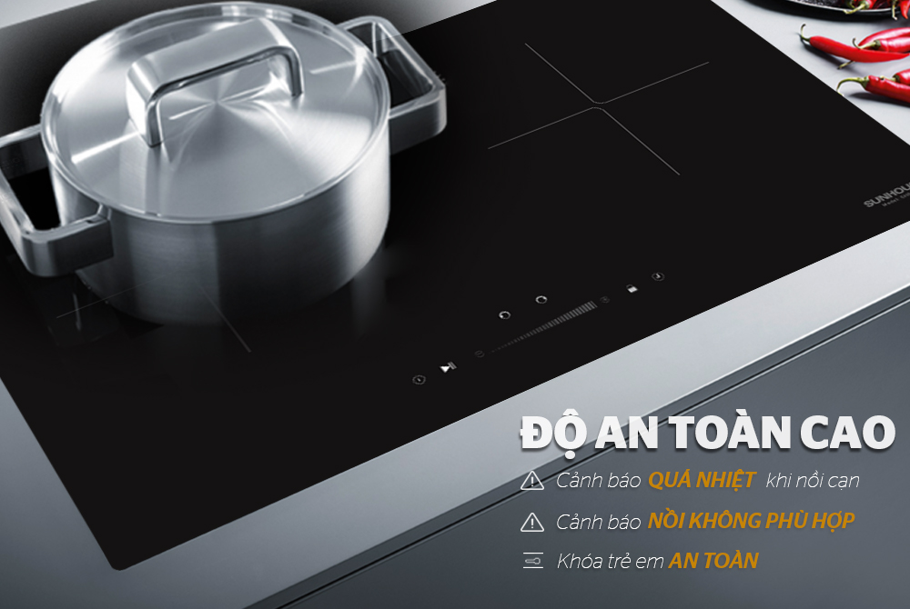 Bếp từ đôi Sunhouse SHB DI02 được trang bị nhiều tính năng hiện đại như hẹn giờ, khóa trẻ em và tự động ngắt khi quá tải giúp đảm bảo an toàn cho người sử dụng và nâng cao độ bền cho bếp.