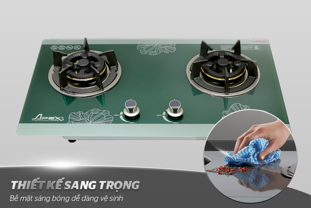 Bếp gas âm kính APEX APB8815 có kiểu dáng sang trọng, mặt kính toàn phần. Đây là loại kính chịu nhiệt, chịu lực tốt, bề mặt trơn bóng nên rất dễ dàng lau chùi, vệ sinh. APB8815 được thiết kế lắp âm vừa tiết kiệm diện tích, vừa góp phần tạo nên vẻ hiện đại cho căn bếp của bạn.