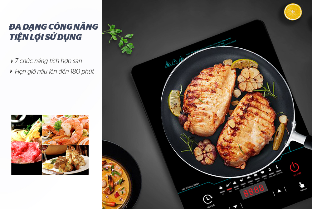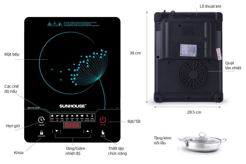 Chế độ nấu: Lẩu – Xào – Chiên – Súp – Hâm nóng – Hấp – Đun nước