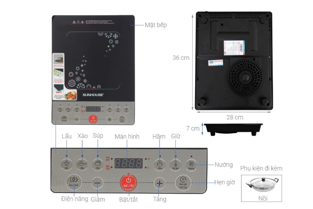 Chế độ nấu: Lẩu – Xào – Súp – Hầm – Giữ ấm – Nướng