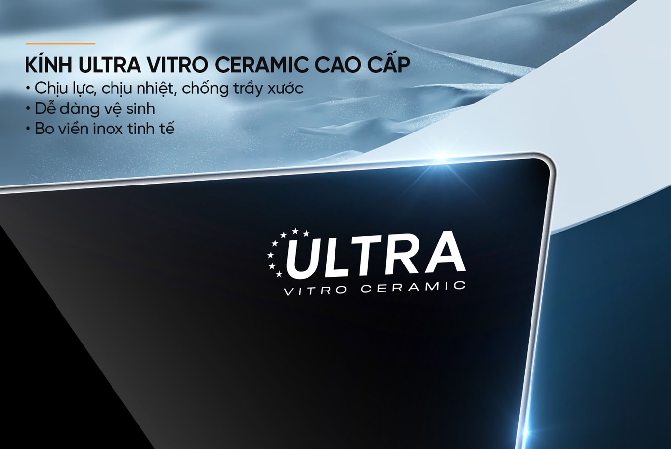 - Mặt kính cao cấp Ultra Vitro Ceramic bo viền sang trọng