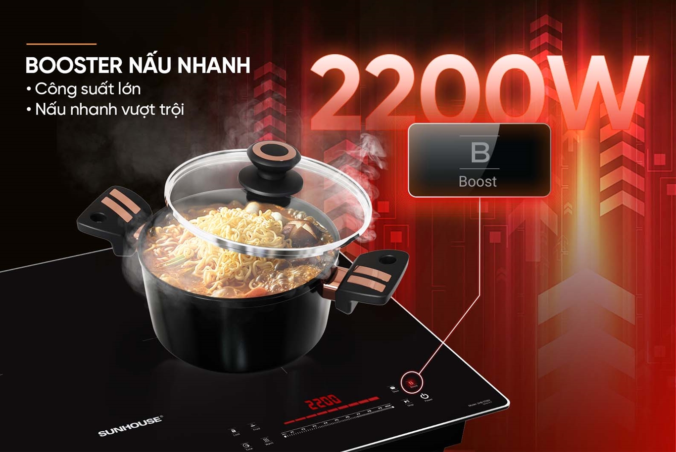 - BOOSTER nấu nhanh chóng, hiệu suất truyền nhiệt tới 90%