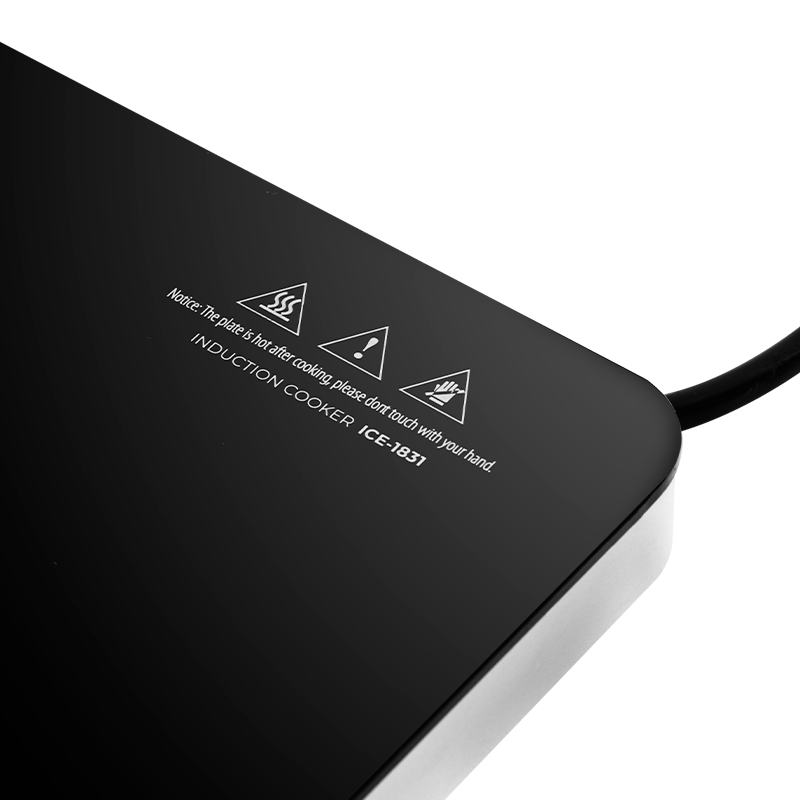 Bếp từ đơn ICE-1831 có kiểu dáng nhỏ gọn, màu đen sang trọng cùng thiết kế tinh tế, đẹp mắt với các họa tiết được in chìm xuống mặt kính.
