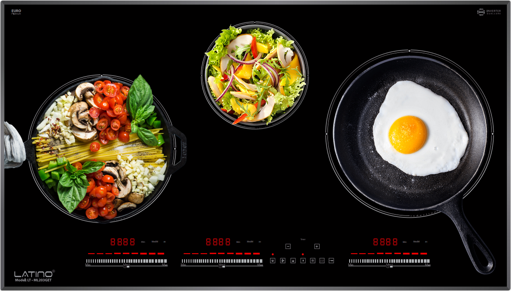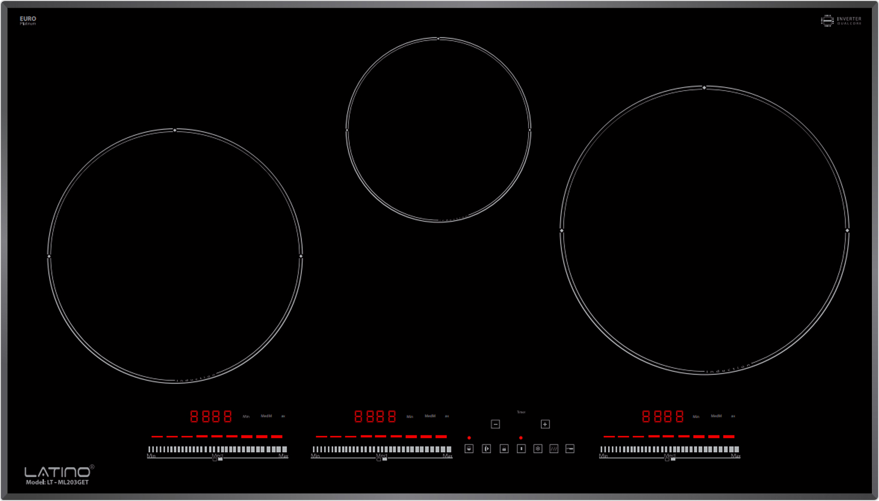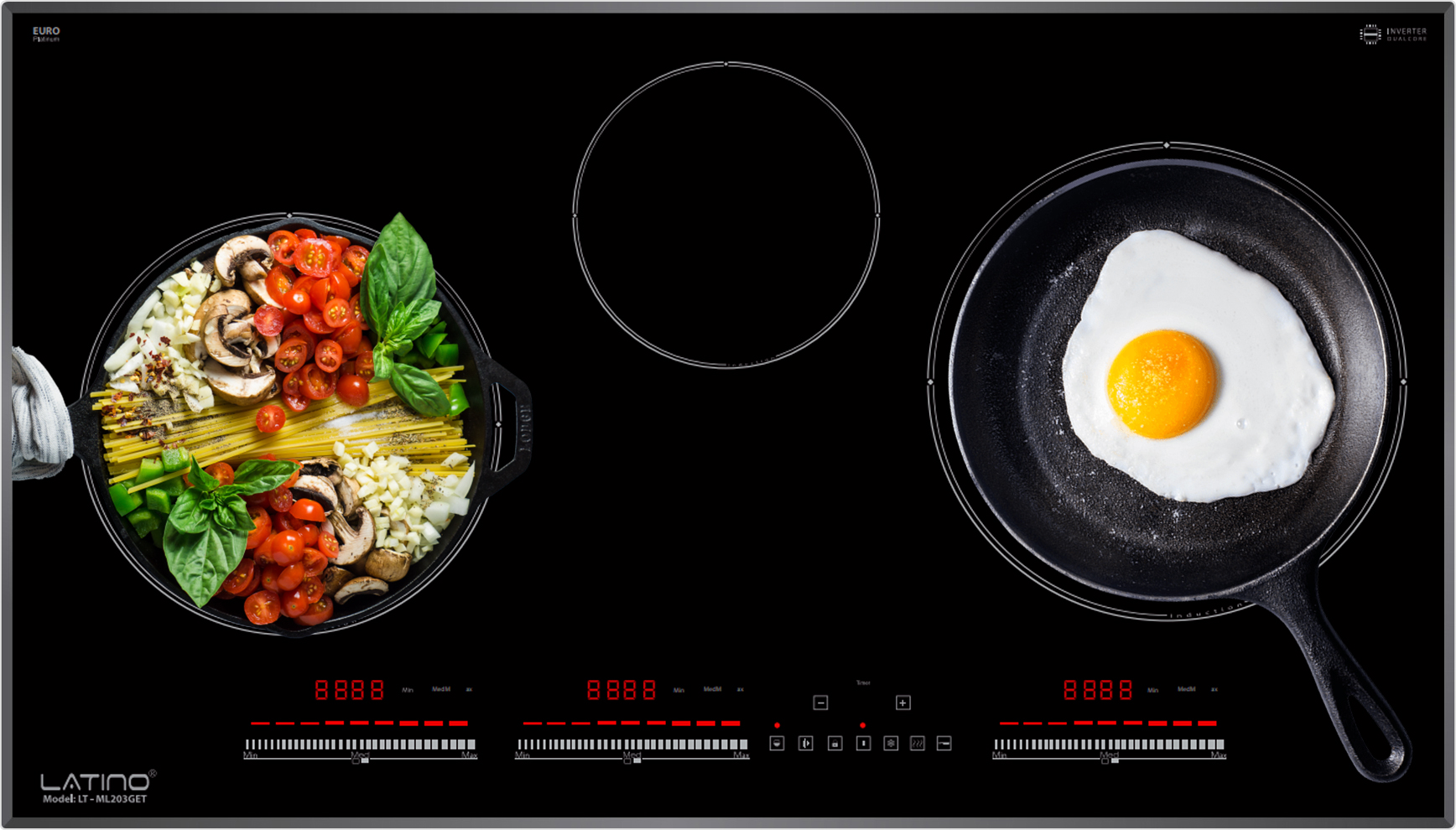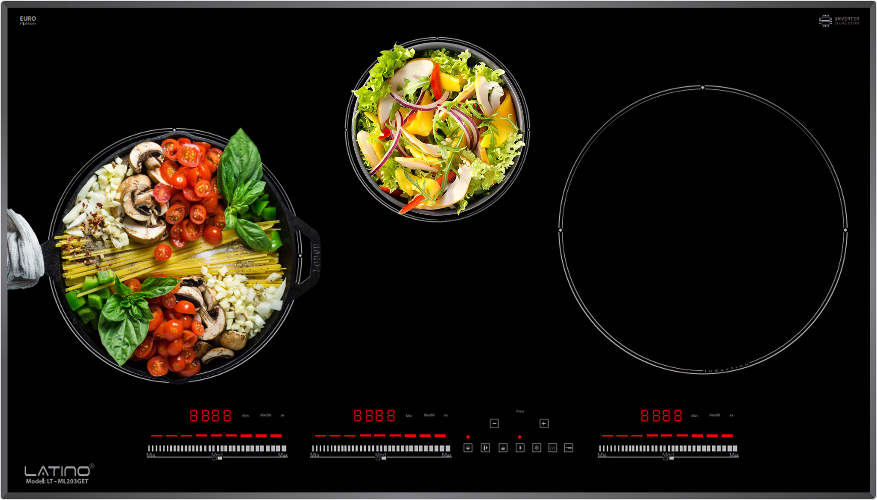 Bếp từ Latino LT-ML203GET được tích hợp chức năng tự nhận diện vùng nấu, khi ta đặt nồi lên 1 trong 3 vùng nấu sau đó ấn nút khởi động bếp sau thời gian 1-2 giây bếp sẽ tự động tìm vùng nấu đã có nồi, ta chỉ việc điều chỉnh mức công suất to nhỏ theo ý muốn mà không phải thao tác chọn vùng nấu như bếp thông thường. Công nghệ Inverter được áp dụng trên bếp từ Latino LT-ML203GET có khả năng phản ứng thay đổi công suất theo điều khiển ngay tức thì, khi người dùng điều chỉnh tăng giảm nhiệt độ đun nấu, bếp điều chỉnh thay đổi tức thì về mức nhiệt độ mong muốn.
