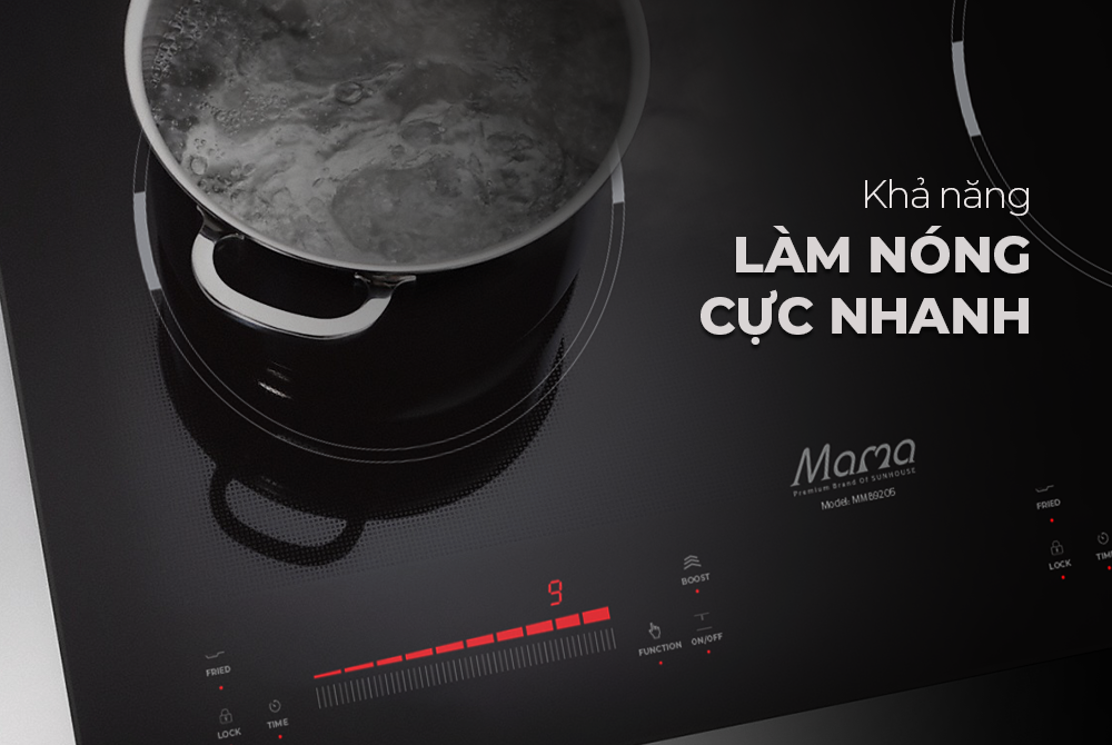Công suất lớn với 9 mức nhiệt khác nhau và khả năng làm nóng nhanh gấp 2 lần bếp thường, MMB9205 sẽ nhanh chóng làm chín thực phẩm, giúp bạn tiết kiệm thời gian nấu nướng và tiết kiệm điện năng tối đa cho gia đình.