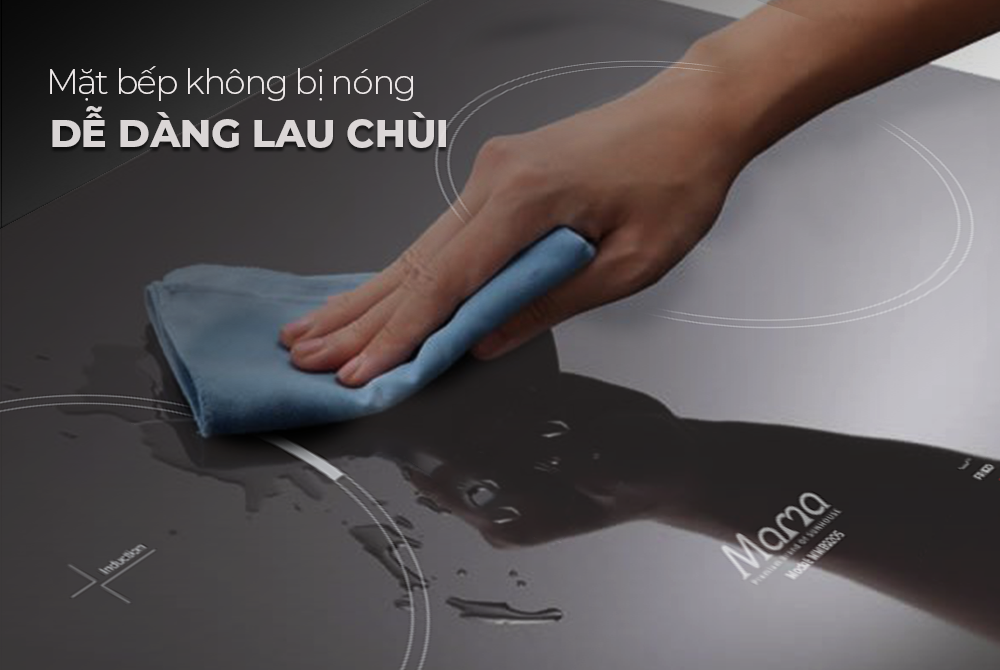 MMB9205 với cơ chế truyền nhiệt điện từ giúp cho mặt bếp không bị nóng, dễ dàng lau chùi ngay cả trong và sau khi nấu nướng. Đồng thời giúp mặt kính bền bỉ, không bị biến dạng do bị ảnh hưởng bởi sự giãn nở nhiệt.
