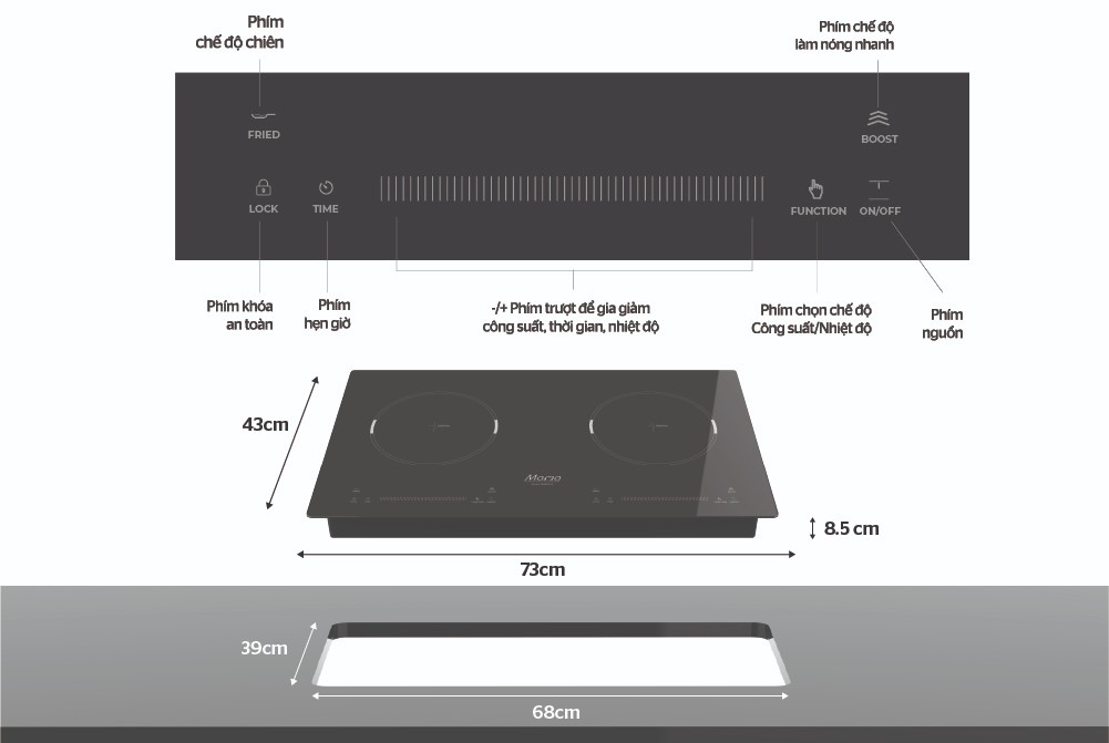 Kích thước mặt bếp: 680 x 390 mm