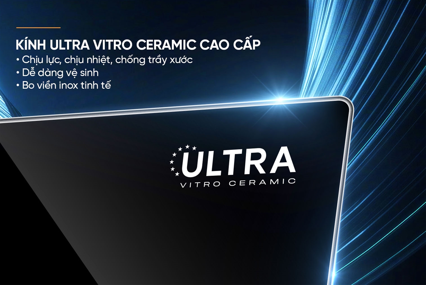 - Mặt kính cao cấp Ultra Vitro Ceramic bo viền sang trọng