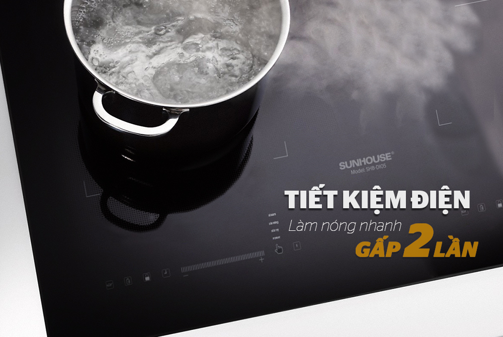 Với công suất lớn và khả năng làm nóng nhanh gấp 2 lần bếp thường, SUNHOUSE SHB-DI05 nhanh chóng làm chín thực phẩm, giúp bạn tiết kiệm thời gian nấu nướng và tiết kiệm điện năng tối đa cho gia đình.