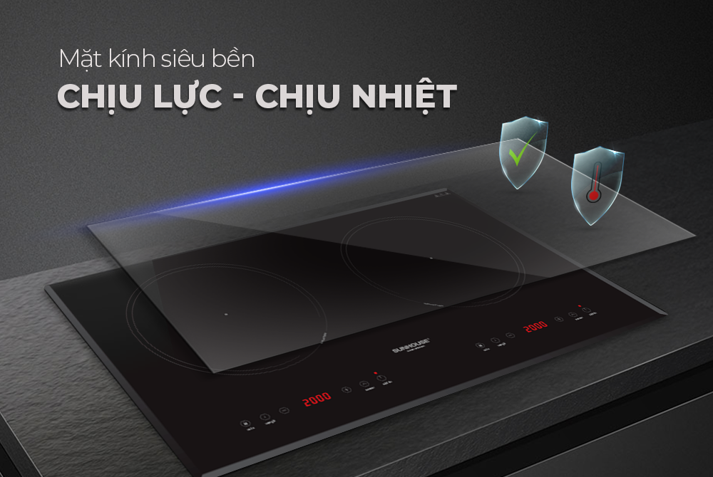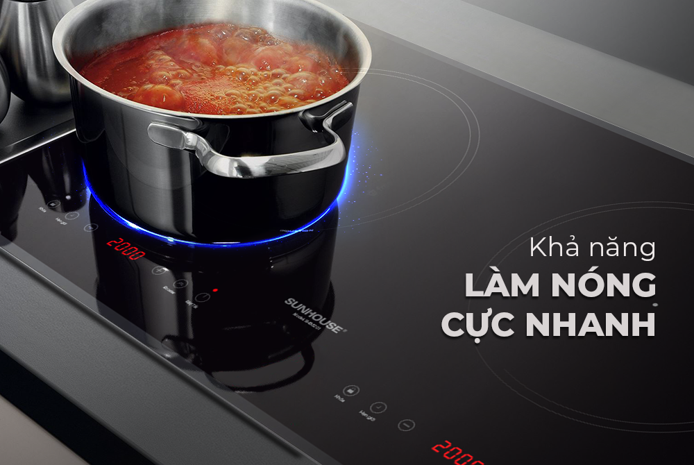 Bếp đôi điện từ SUNHOUSE SHB8201 với mâm từ được làm bằng 100% dây đồng siêu bền, giúp truyền nhiệt tốt và tăng tuổi thọ của bếp.