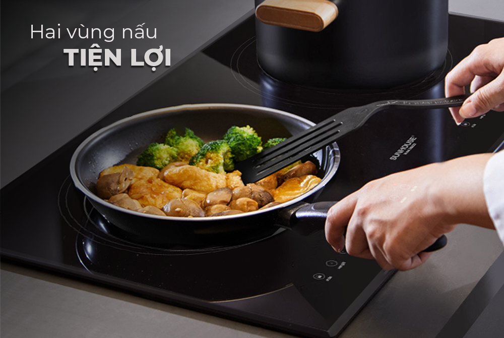 Bếp đôi điện từ SUNHOUSE SHB8201 có 2 vùng nấu rộng rãi giúp bạn chế biến được nhiều món ăn cùng lúc. Bạn có thể vừa nấu canh, vừa chiên xào thực phẩm một cách thật thoải mái.