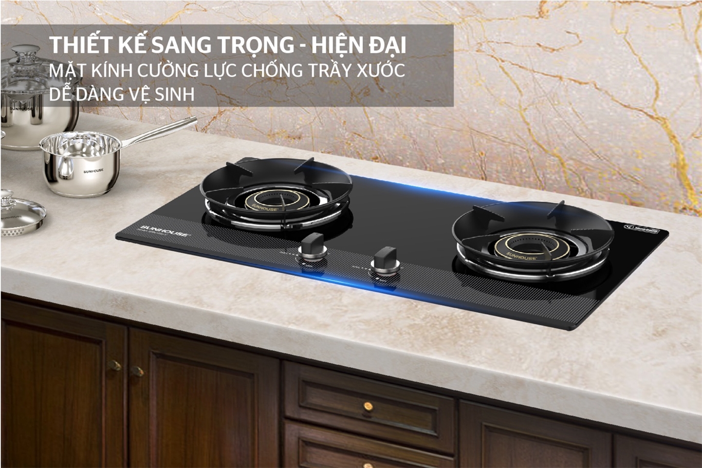 Bếp gas âm kính SUNHOUSE SHB61030-V có kiểu dáng sang trọng, mặt kính toàn phần đen bóng. Đây là loại kính chịu nhiệt, chịu lực tốt, bề mặt trơn bóng nên rất dễ dàng lau chùi, vệ sinh. Sản phẩm được thiết kế lắp âm vừa tiết kiệm diện tích, vừa góp phần tạo nên vẻ hiện đại cho căn bếp của bạn.
