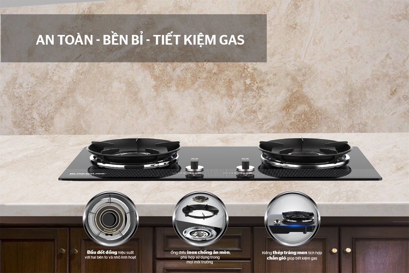 - Lửa tỏa đều, tiết kiệm gas