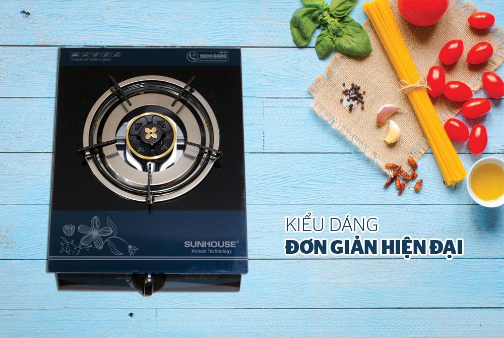 Bếp gas đơn SUNHOUSE SHB212KT có 1 lò đun, điều khiển lửa to nhỏ bằng núm vặn tiện lợi. Mặt kính với gam màu đen & tô điểm họa tiết trang trí vừa mang lại tính thẩm mỹ cao vừa có khả năng chịu lực, chịu nhiệt, đồng thời dễ dàng vệ sinh sau khi sử dụng.