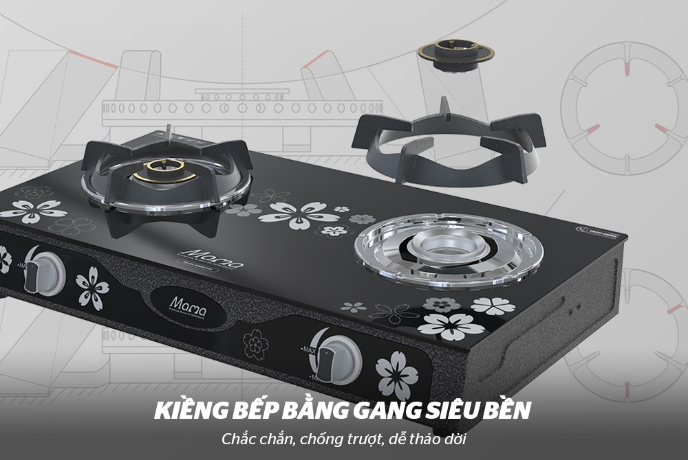 Kiềng bếp được thiết kế với 5 chân lượn sóng giúp tránh được tạt gió khi nấu, giúp giữ cho ngọn lửa ổn định, đảm bảo không trơn trượt, nghiêng ngả trong quá trình nấu ăn.