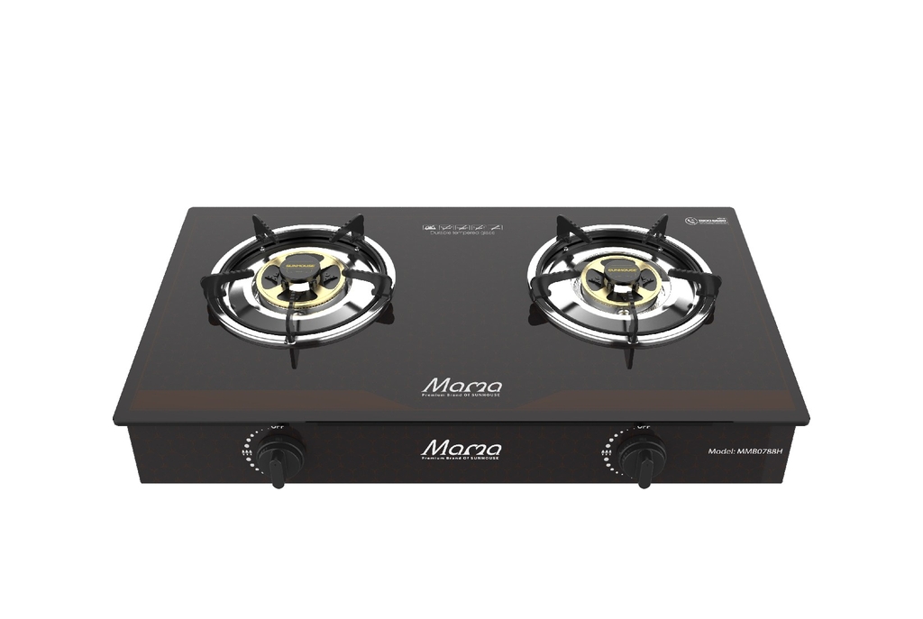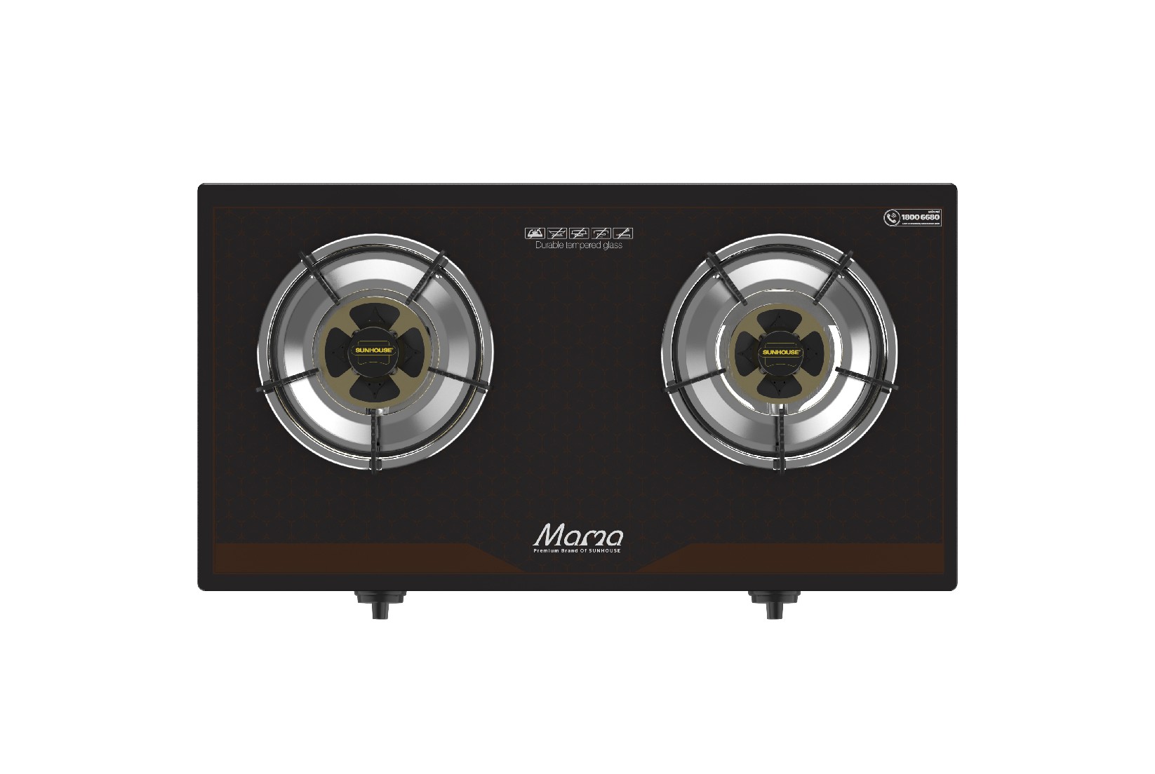 Bếp gas dương kính SUNHOUSE MMB0788H có 2 vùng nấu, điều khiển lửa to, nhỏ bằng núm vặn tiện lợi, chế biến được nhiều món ăn cùng lúc. Mặt kính với gam màu đen trang nhã, sang trọng kết hợp cùng hoạ tiết nâu tinh tế.