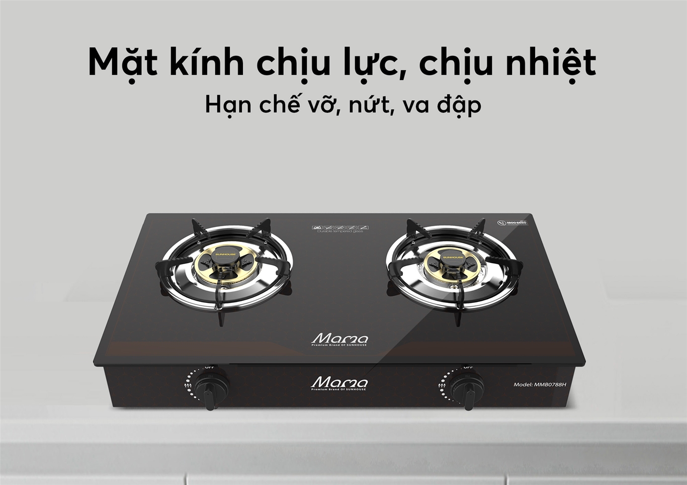 Bếp gas SUNHOUSE MMB0788H được trang bị với mặt kính cường lực có độ dày lên tới 7mm, hạn chế tối đa khả năng nứt vỡ, hoặc trầy xước, va đập từ bên ngoài. Đồng thời, bề mặt kính cường lực rất thuận tiện cho việc vệ sinh và tẩy rửa.