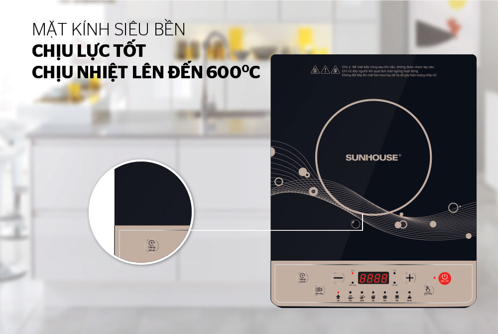 - Mặt kính siêu bền chịu được nhiệt độ lên đến 600 độ C
