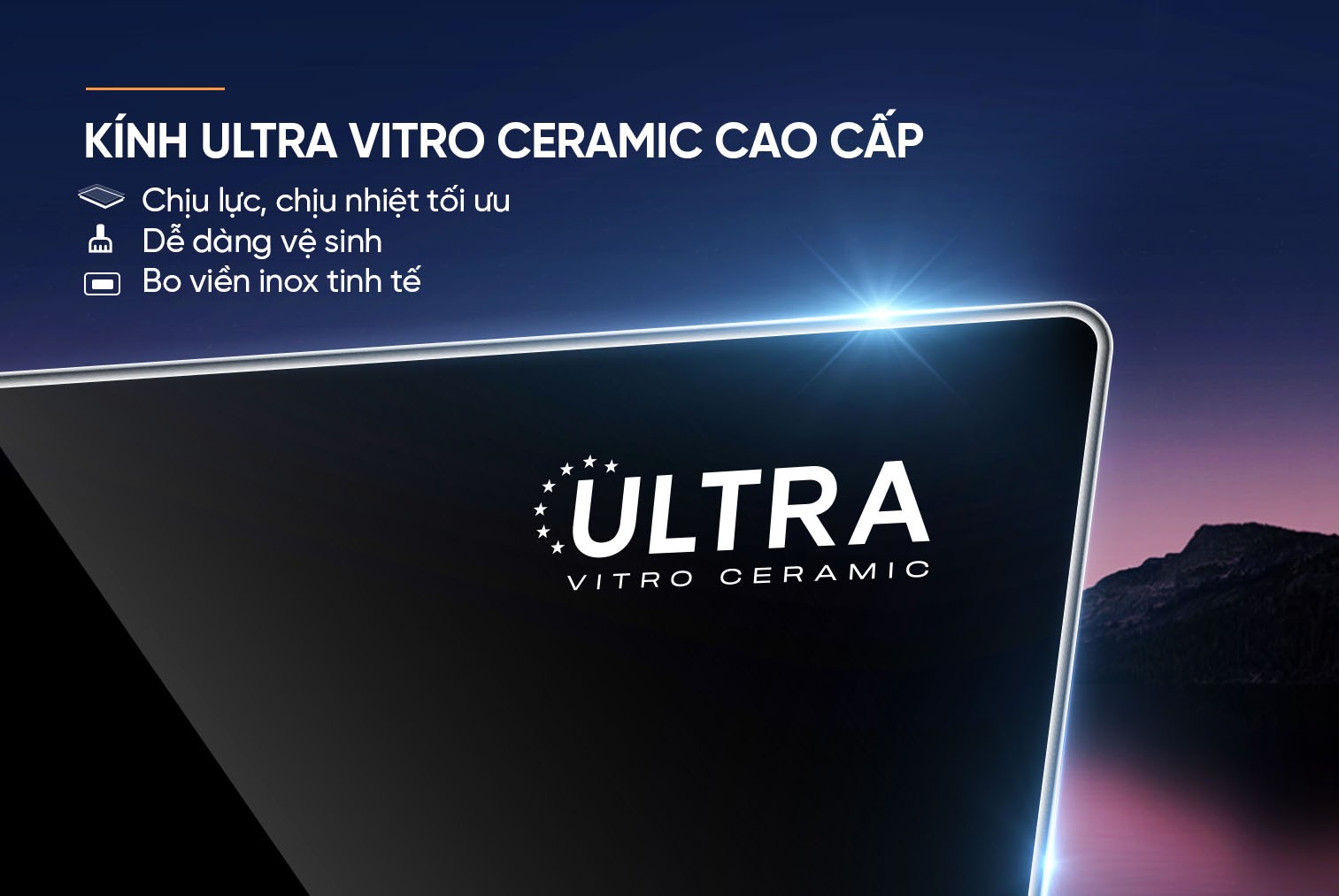- Mặt kính cao cấp Ultra Vitro Ceramic bo viền sang trọng