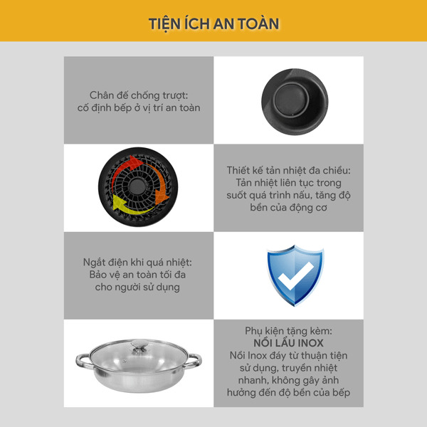 - Tiện ích: Bảo vệ quá nhiệt