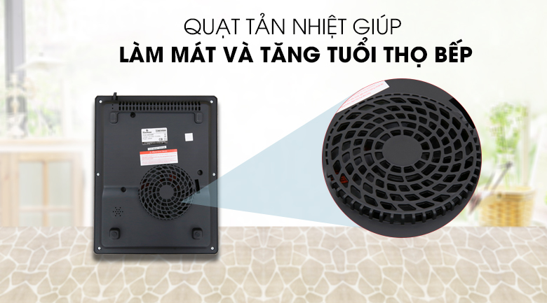 Quạt tản nhiệt lớn cân bằng nhiệt độ tốt cho bếp từ, tránh quá nhiệt khi đun nấu lâu