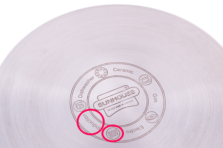 Ngoài ra, bạn có thể xem các nhãn được dán trên nồi hay dưới đáy nồi, nếu có dòng chữ Induction hoặc ký hiệu từ trường là nồi có thể sử dụng cho bếp từ.