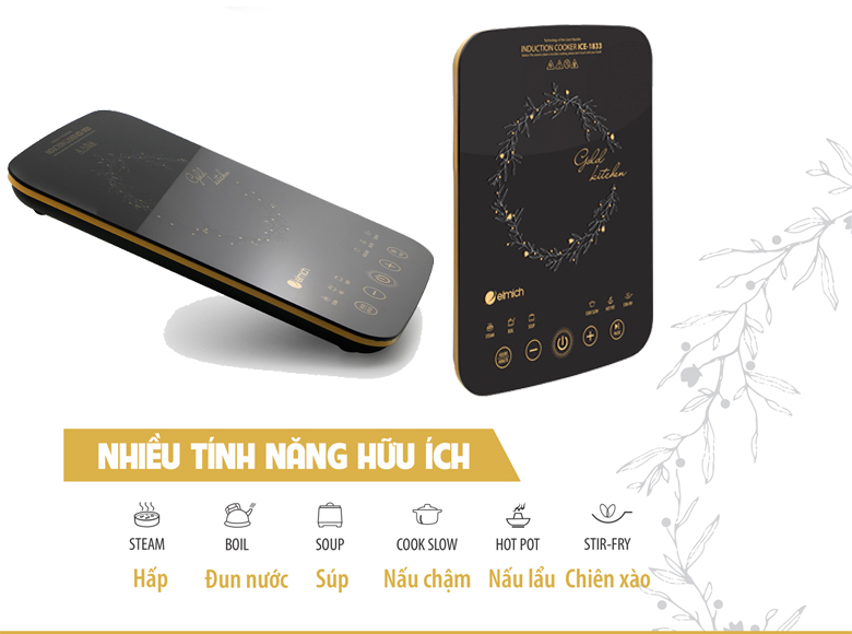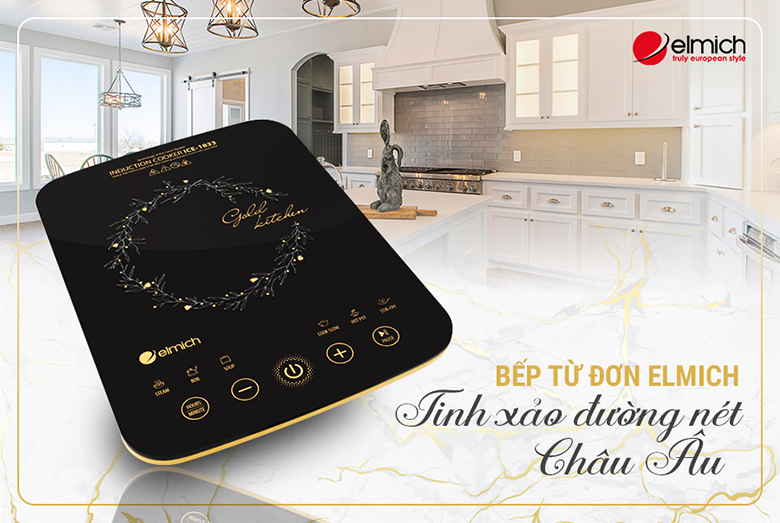 Bếp từ đơn Elmich ICE-1833 thiết kế nhỏ gọn, mỏng nhẹ tiện lợi cho việc di chuyển, dễ dàng đặt ở mọi vị trí trong nhà. Bếp nổi bật với màu đen huyền bí và những chi tiết mạ vàng tinh xảo. Mặt kính CERAMIC cường lực, chịu nhiệt chống sốc nhiệt ở nhiệt độ cao, chỉ cần vệ sinh nhẹ nhàng đã khiến mặt bếp lại trở nên sáng bóng như mới.
