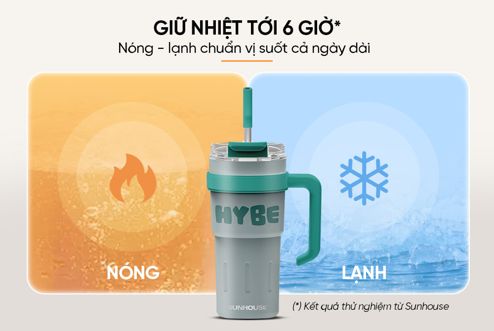Với cấu tạo 2 lớp cùng phần nắp kín khít, bình có thể giữ nóng và giữ lạnh lên tới 6 giờ. Dù bạn thích cà phê nóng vào buổi sáng, trà ấm vào buổi chiều hay nước mát sau khi tập luyện, Bình cốc giữ nhiệt Stay Hybe 750ml Sunhouse KS-TU750SG đều đáp ứng tốt.