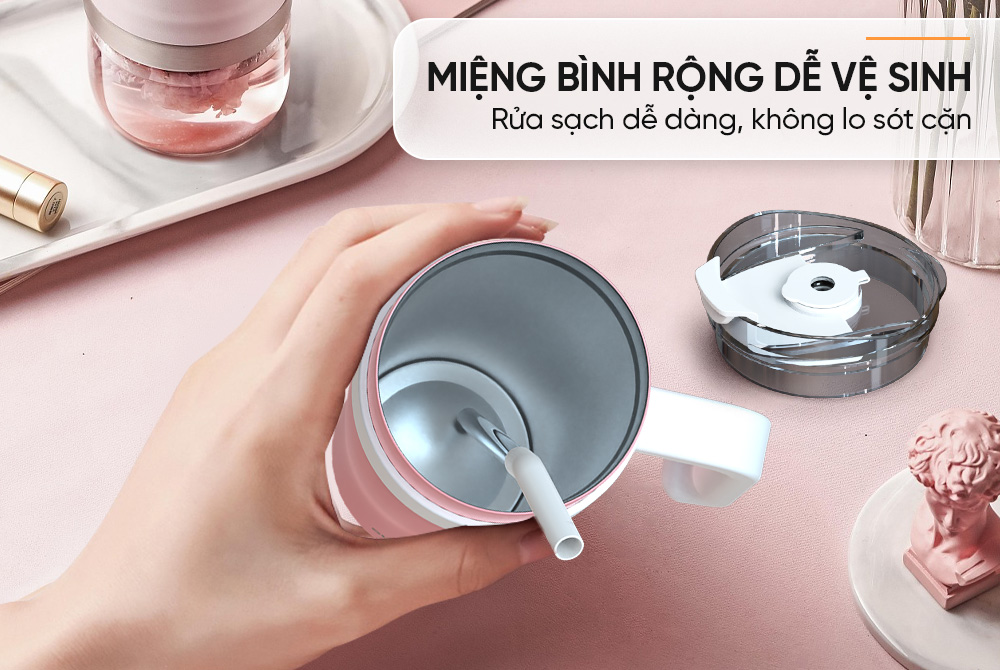 Miệng bình thiết kế rộng giúp bạn dễ dàng thêm đá, rót nước và vệ sinh nhanh chóng, sạch sẽ, không lo đóng cặn hay mùi khó chịu.